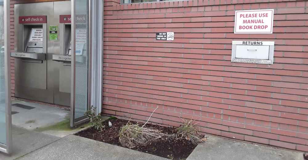You forgot one more option! Some people leave their books at the front door! This looks like the Bothell Library?